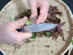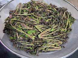질긴 줄기와 끝부분을 잘라내고, 흐르는 물에 깨끗이 씻어 흙을 제거합니다.