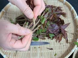 질긴 줄기와 끝부분을 잘라내고, 흐르는 물에 깨끗이 씻어 흙을 제거합니다.