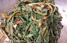 손질한 가죽나물에 양념장을 넣고 살살 조물조물 무쳐줍니다.