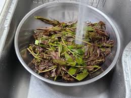 질긴 줄기와 누런 잎을 제거하고, 깨끗하게 씻어 흙과 먼지를 말끔히 제거합니다.