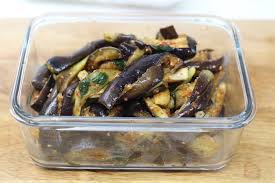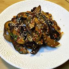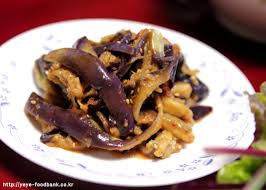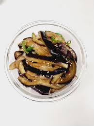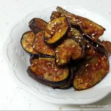 1) 부드럽게 데친 가지를 고소하고 간단한 양념으로 무친 밥반찬