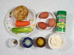 볼에 감자, 오이, 양파, 달걀을 넣고 마요네즈, 식초, 설탕, 머스터드를 넣어 고루 섞어줍니다 간은 소금과 후추로 조절합니다