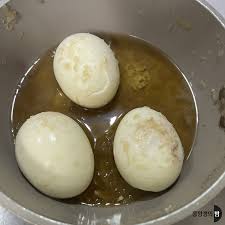 계란 껍질을 조심스럽게 벗겨 준비합니다. 껍질에 금이 가면 간이 잘 배요 🥚