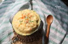 전자렌지에서 꺼내기 전에, 숟가락을 이용해 가운데 부분을 살짝 확인해 보세요. 아직 덜 익었으면 다시 30초씩 돌려가며 익혀주세요. 계란찜은 익히는 시간이 중요합니다. - 마무리 장식