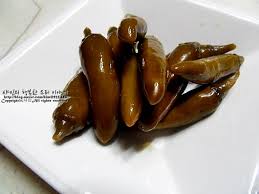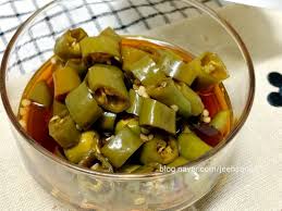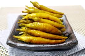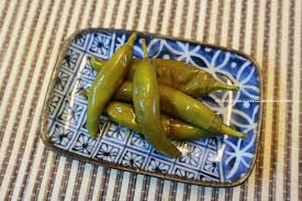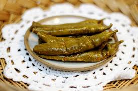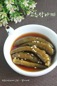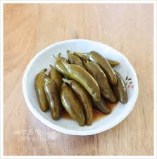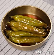 1) 청양고추 또는 꽈리고추를 간장, 식초, 설탕으로 절여 숙성한 장아찌