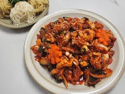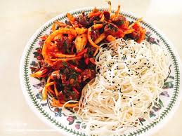 소면도 충분히 잘 어울립니다 더 부드럽고 순한 맛을 원할 경우 소면으로 대체하세요