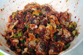 1) 삶은 꼬막을 매콤새콤 양념으로 버무린 반찬