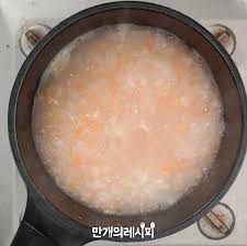 4단계 | 불린 쌀 넣고 죽 끓이기 |