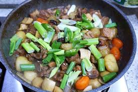 냄비에 갈비와 양념장을 넣고 중불에서 끓이다가, 끓기 시작하면 무와 당근을 넣고 30분 정도 졸입니다. 이후 감자, 양파, 표고버섯을 넣고 약불로 줄여 20~30분 더 익힙니다. 마지막에 대파를 넣어 향을 더합니다.