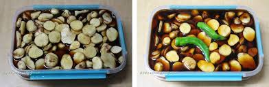 깨끗이 소독한 유리병이나 밀폐용기에 돼지감자를 담고 식힌 절임 간장을 부어줍니다.