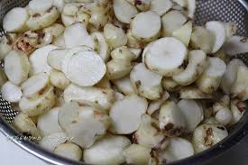 얇게 썬 돼지감자를 찬물에 10분 정도 담가 아린맛을 제거한 뒤 물기를 빼줍니다.