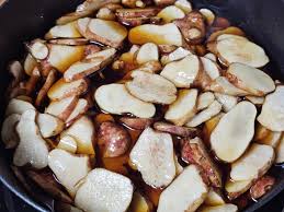 돼지감자는 흙을 깨끗이 씻고 껍질째 얇게 슬라이스하거나 반달 모양으로 썰어주세요.
