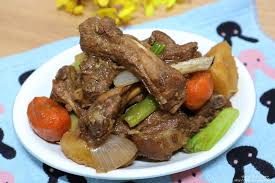 1) 돼지 등갈비를 부드럽게 삶아 양념에 졸인 요리