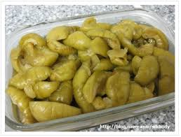 1) 풋매실을 간장, 설탕, 식초 등에 절여 만든 저장식품