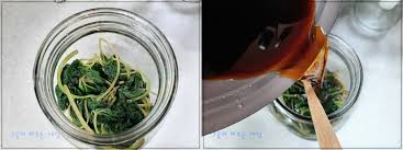 소독한 유리병에 머위를 켜켜이 담고 식힌 양념장을 붓습니다. 냉장고에서 하루 숙성 후 먹을 수 있고, 3일~5일 숙성하면 맛이 더 깊어져요.