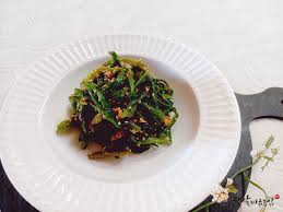 | 5단계 | 미나리에 양념 넣고 조심스럽게 무치기 |