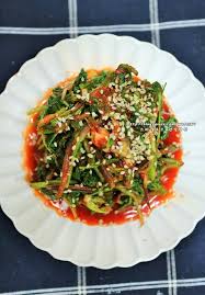 미나리와 쪽파를 양념장에 넣고 살살 무치듯 버무려줍니다.