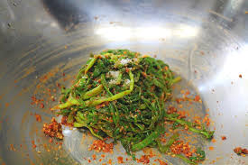 - 미나리는 물기를 꼭 제거 — 무를 때 물이 생기지 않게