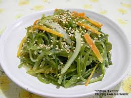 • 미역줄기를 살짝 데쳐서 고추장, 식초, 설탕, 참기름을 넣고 무쳐주면 간단한 나물 무침이 됩니다.