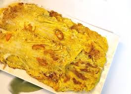 - 배추 한 장에 반죽을 고루 묻혀 팬에 기름을 두르고 중약불에서 양면이 노릇노릇하게 구워줍니다.