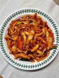 오징어는 내장을 제거하고, 껍질을 벗겨 깨끗이 씻은 후 먹기 좋은 크기로 썰어줍니다. 오징어의 몸통은 반으로 잘라 링 모양으로 썰고, 다리도 적당히 잘라주세요. 이렇게 썬 오징어는 부드럽고 잘 볶을 수 있습니다. - 양념장 만들기