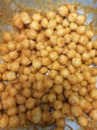 삶은 병아리콩을 기름과 소금, 향신료에 버무려 에어프라이어에 180도 15분 정도 돌리면 고소한 단백질 간식 완성!