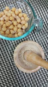 삶은 병아리콩에 올리브오일, 마늘, 레몬즙, 참깨(타히니)를 넣어 간 후 빵이나 채소에 찍어 먹는 건강 디핑 소스입니다 🥖