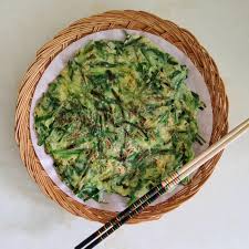 - 완성: 다 구워진 부추전은 키친타올 위에 올려 여분의 기름을 제거한 후, 먹기 좋은 크기로 잘라 접시에 담아낸다.