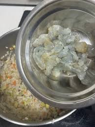 새우는 껍질과 내장을 제거하고 잘게 썰어주세요. 큰 새우를 사용할 경우 칼로 다져주는 것이 좋아요. 비린내가 걱정되면 약간의 소금과 청주로 밑간해두세요 🦐