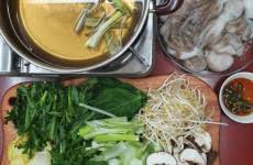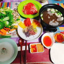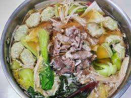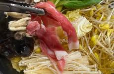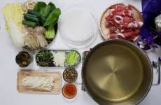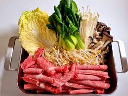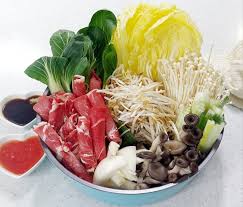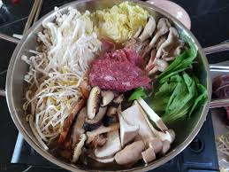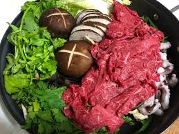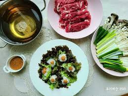 1) 얇게 썬 고기와 채소를 육수에 데쳐 먹는 요리