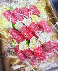 소고기를 육수에 살짝 데쳐 먹는 일본식 전골로, 담백하고 고급스러운 맛이 특징입니다.