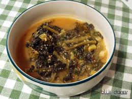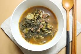 1) 무청을 삶아 된장과 육수에 끓여낸 전통 국물요리