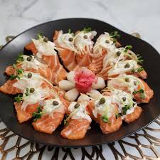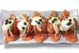 레몬즙을 살짝 뿌리거나 얇게 썰어 레몬 위에 올리면 비린맛을 줄일 수 있어요. 또는 살짝 구운 연어로 바꿔도 좋아요.