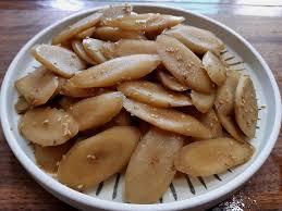 식초물에 담가야 갈변 방지와 아린 맛 제거가 가능해요. 꼭 담가주세요.