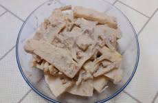 삶은 죽순은 길쭉하게 채를 썰어 먹기 좋은 크기로 준비합니다.