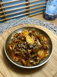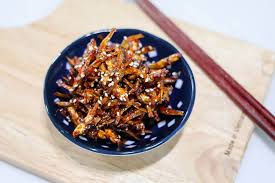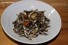 1) 중간 크기의 마른 멸치를 양념에 볶아 만든 밑반찬