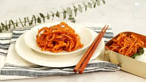 건조한 오징어를 가늘게 찢은 후 가공한 해산물로, 부드러우면서도 쫄깃한 식감이 특징입니다. 이를 양념에 볶아 만든 진미채볶음은 한국 가정식 반찬의 대표 메뉴로 자리 잡고 있습니다.