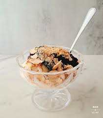 아이스크림을 얹어 더욱 풍성하게 즐기세요. 드시기 직전에 모든 재료를 잘 섞어 먹으면 맛이 더 살아납니다!